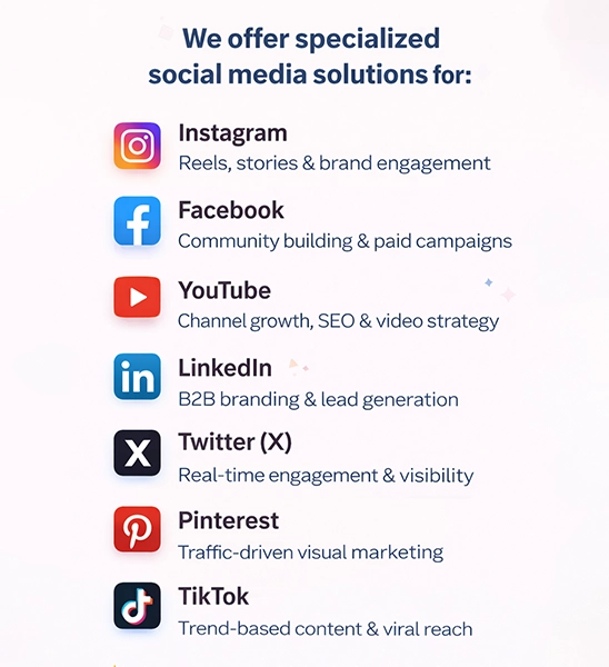 We offer specialized social media solutions for: